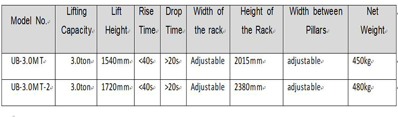 UB-3.0MT 3.0Ton Two Post Movable Lift